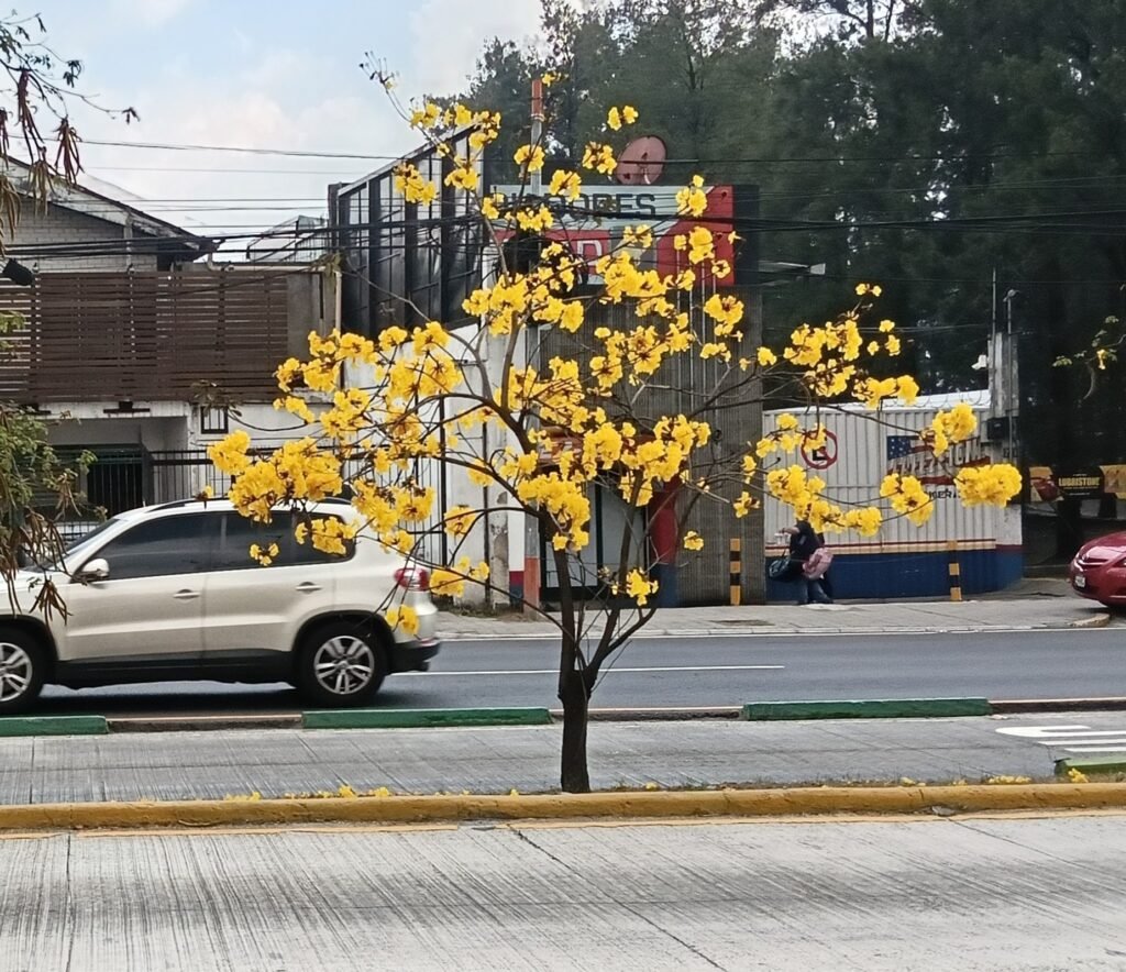 Sus flores amarillas destacan con una belleza inesperada en medio del caos urbano. Es imposible no verlo.